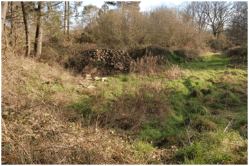 Voici ce qui reste de la carrière dite « du petit rocher » Achetée par les Ets Charrier, de la Roche Bernard, elle aurait été comblée par des gravats. A ce jour ce lieu est fermé, et la végétation se l’est accaparé !
