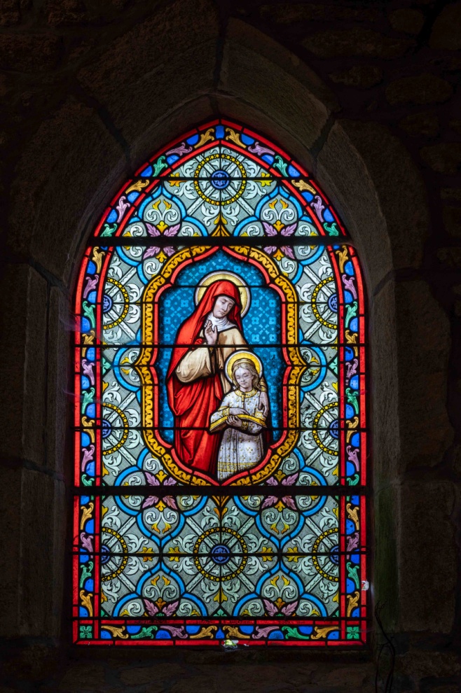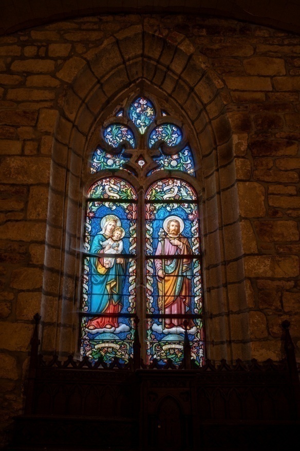 Devant le vitrail se trouve l’autel, œuvre de l’abbé Monneraye, qui a remplacé, à Bréhardec, celle du chapelain d’autrefois qui avait un grand talent de sculpteur.
