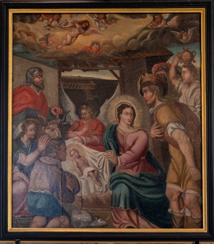La Crucifixion peinte sur bois, l’Assomption sur toile, la Nativité porte la date de 1716 puis la descente de la croix, de 1727, peint par Hilarion Fraval, un maitre peintre Questembertois. Sa fille, Anne fut baptisée à Questembert en 1735.