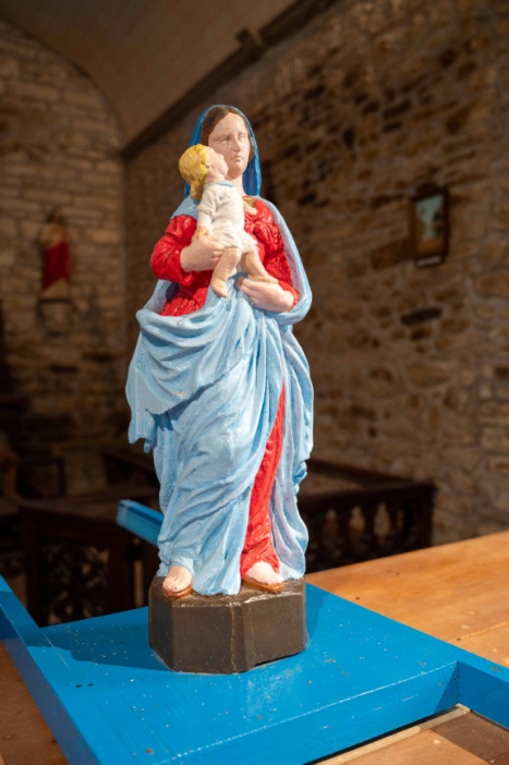 Au dessus du portail d’entrée, une niche accueillait la statue en bois de Notre Dame de l’Ô, sculptée par M. Joseph PIGNON (père). Devenue vétuste, une nouvelle statue en pierre la remplace. Elle a été sculptée par M. Dominique POIRRIER, de Charente, et mise en place pour la cérémonie du 15 août 2023.