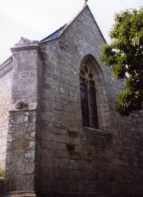 La façade nord a subi un percement de deux ouvertures, une fenêtre et une porte. Cette entrée latérale est faite d’une ogive à voussures nervurées provenant d’une des chapelles de Coëtbihan (St Sauveur ou St Barthélémy). Elle est surmontée d’une pierre où se lit : « rebâtie 1659 ».